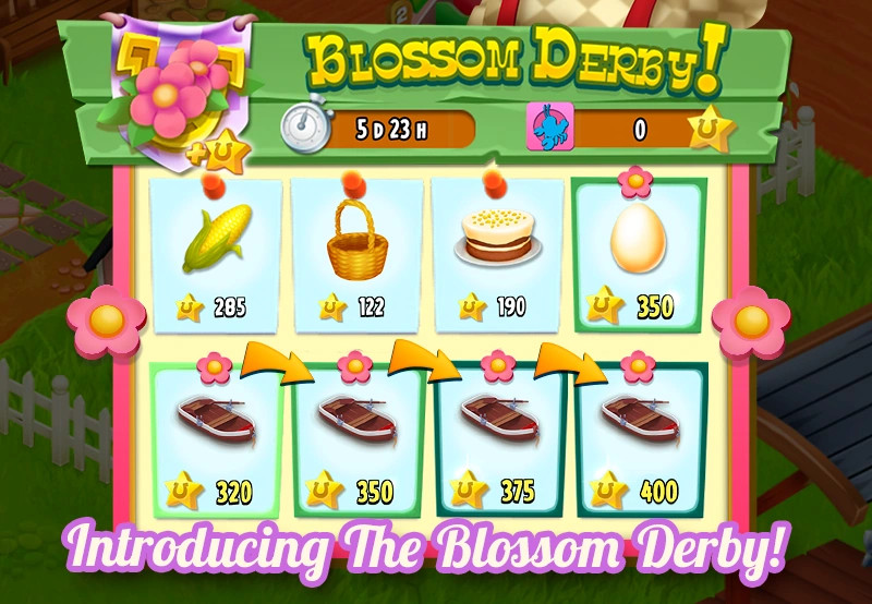 A Blossom (Virágzó) Derby a leggyorsabb pontszerzési lehetőség, de szoros együttműködést kíván. A feladatokat egy rózsaszín virág ikon jelöli.