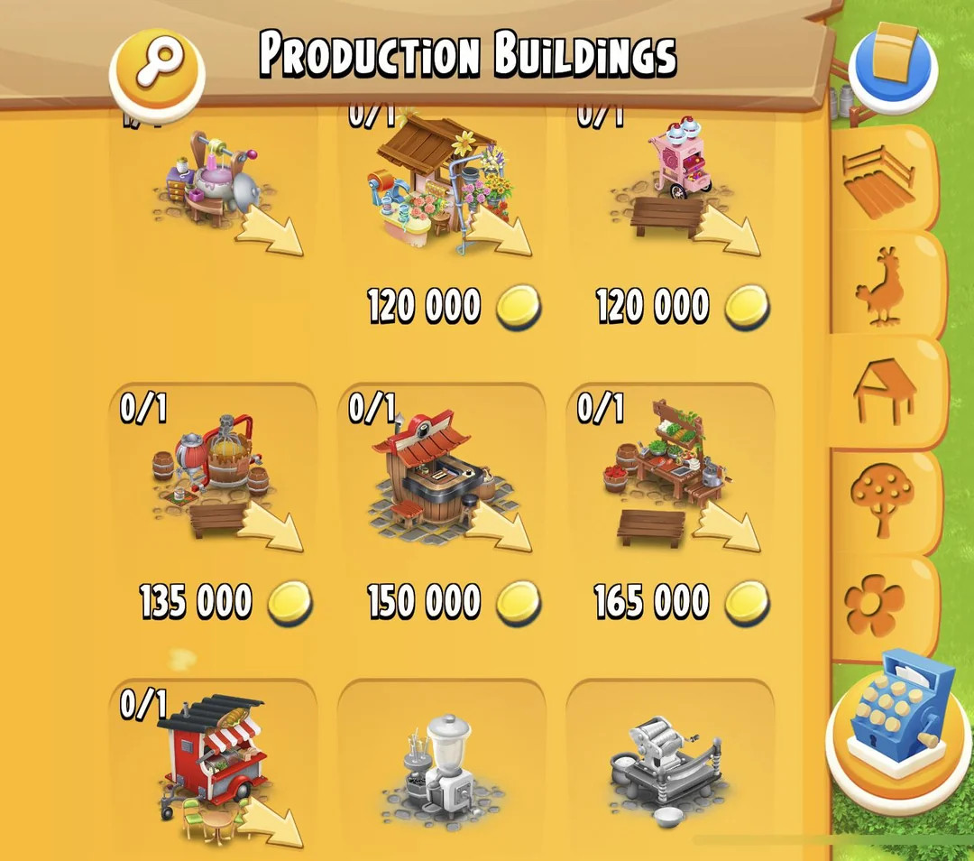 A Hay Day-ben a termelőgépek vagy termelőépületek (Production Buildings) a fejlődésed alapjai, mivel ezekkel alakíthatod át az alapanyagokat értékesebb termékekké. A játék során szintenként válnak elérhetővé, és egyre drágábbak lesznek, ezért érdemes előre tervezni az érmékkel. Ezek a gépek a fejlődésed gerincét alkotják, hiszen a legyártott árukat teherautós rendelésekhez, hajós szállítmányokhoz vagy a városi látogatók kiszolgálására használhatod fel. A gépek használatával tapasztalati pontokat (XP) és "mesterpontokat" gyűjthetsz, amikkel később gyorsabb termelést vagy bónuszokat érhetsz el. Gyémántok segítségével plusz gyártási helyeket (slotokat) is nyithatsz, így a gépek akkor is tudnak dolgozni, amikor éppen nem vagy játékban.