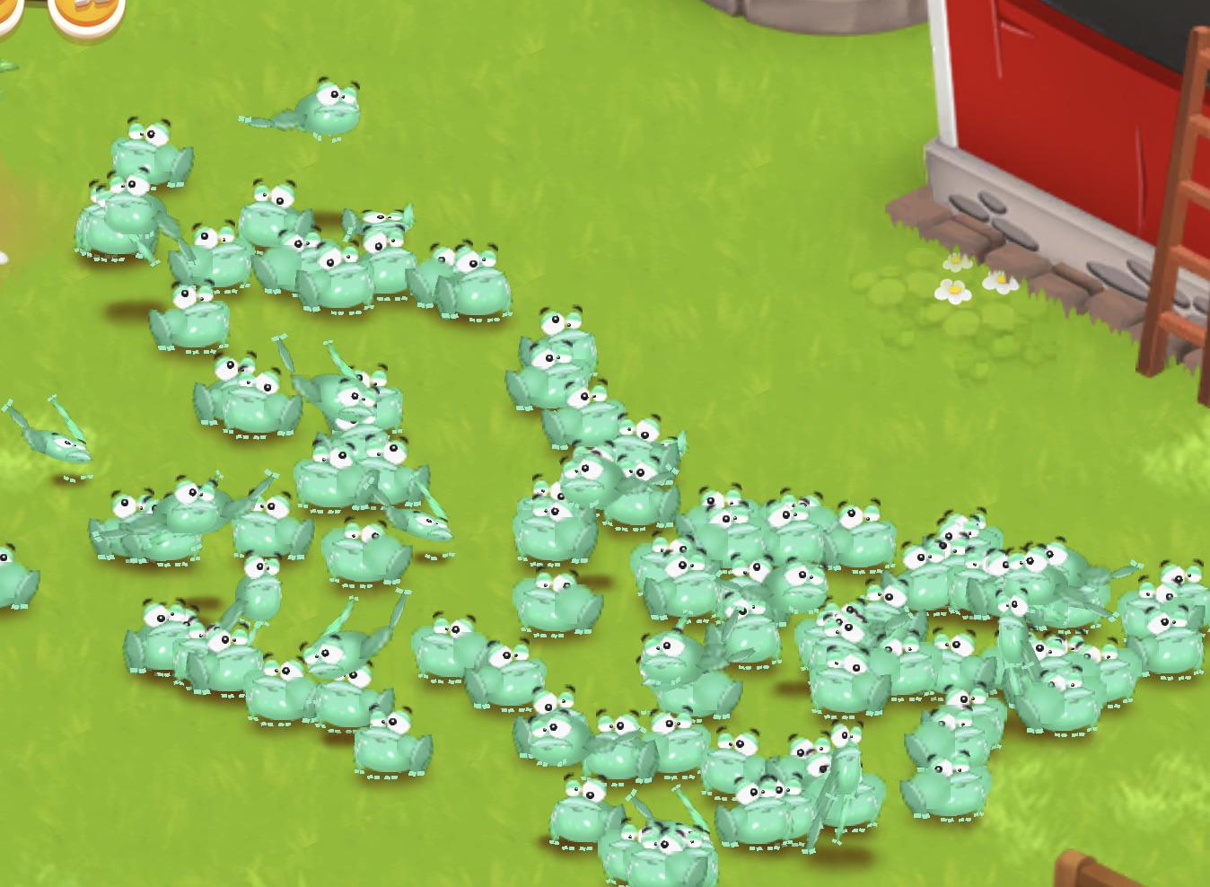 A békák a Hay Day-ben úgynevezett dekorációs állatok, amelyeknek nincs közvetlen haszna, de élettel telibbé teszik a farmodat. Alapvetően a folyóból érkeznek, és szívesen ugrándoznak a füvön, de ha túl sokan lesznek, egy kerti tó (pond) lehelyezésével "összegyűjtheted" őket, mivel beleugranak és eltűnnek. Ha éppen csalogatni szeretnéd őket, a tó ismételt megérintésével (tapping) bírhatod rá a békákat, hogy kiugráljanak belőle. Sokan kreatív módon, kerítésekkel vagy falakkal zárják körbe őket, hogy egyfajta saját "békafarmot" hozzanak létre a dekoráció részeként. Bár néha zavaróak lehetnek a nagy számban megjelenő példányok, a békák teljesen ártalmatlanok, nem eszik meg a terményt és nem foglalnak helyet a magtárban sem.